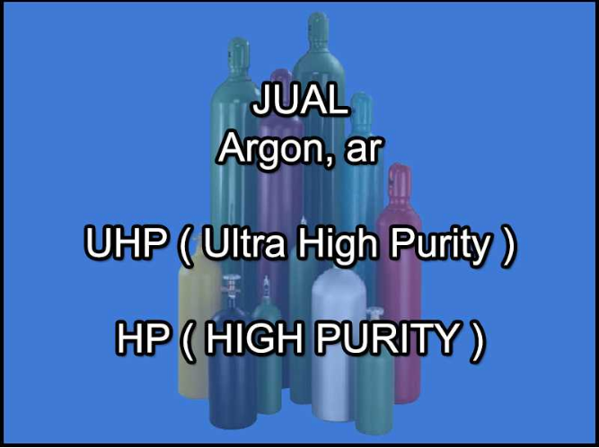 Jual Gas Argon UHP/ HP ( Ultra High Purity / High Purity) [ Argon/ ar] Argon UHP atau HP. Gas argon biasa dipakai dalam dunia industri welding, membuat lampu, filing lampu, dan gelas kaca. Menghasilkan pembakaran las jauh lebih baik dan jauh lebih bersih. Silahkan hubungi kami untuk memesan gas argon HP atau UHP.