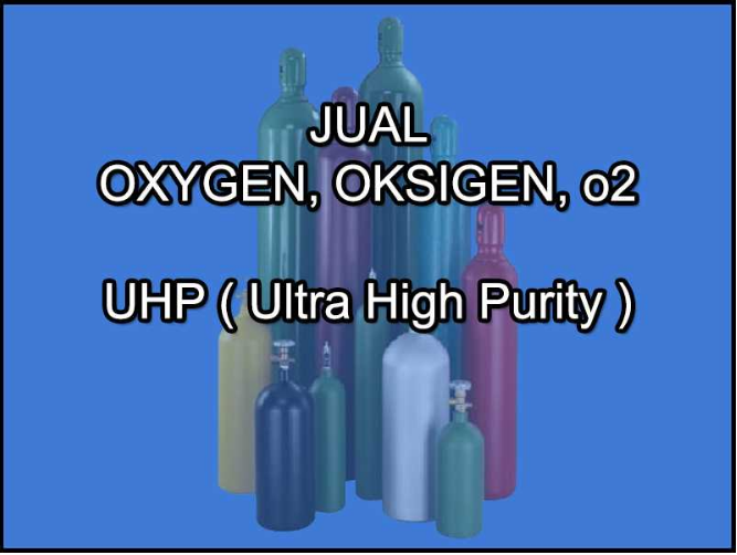 Jual Gas Oksigen UHP/ HP ( Ultra High Purity / High Purity) [ o2/ Oxygen/ Oksigen] Kadar Oksigen UHP sampai 99.99998% dan kadar HP sampai 99.998% . Oksigen biasanya digunakan sebagai pengoksida, hanya fluorin mempunyai negatif elektron yang lebih tinggi. Oksigen juga digunakan sebagai bahan pengoksida dalam bahan api roket.